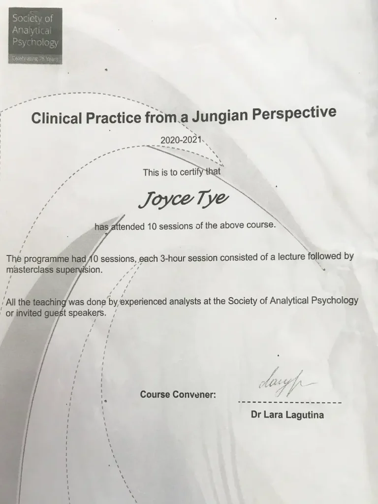 With over a decade of immersion in Jungian studies, Joyce holds a Master’s degree in Jungian and Post-Jungian Studies and a BA (Hons) in Therapeutic Communication and Therapeutic Organisations from Essex University. She has also trained with the Society of Analytical Psychology, the Centre for Applied Jungian Studies, and the Jung Platform. Joyce is an accredited coach with IACTM and holds a CPCAB Level 3 certificate in counselling.